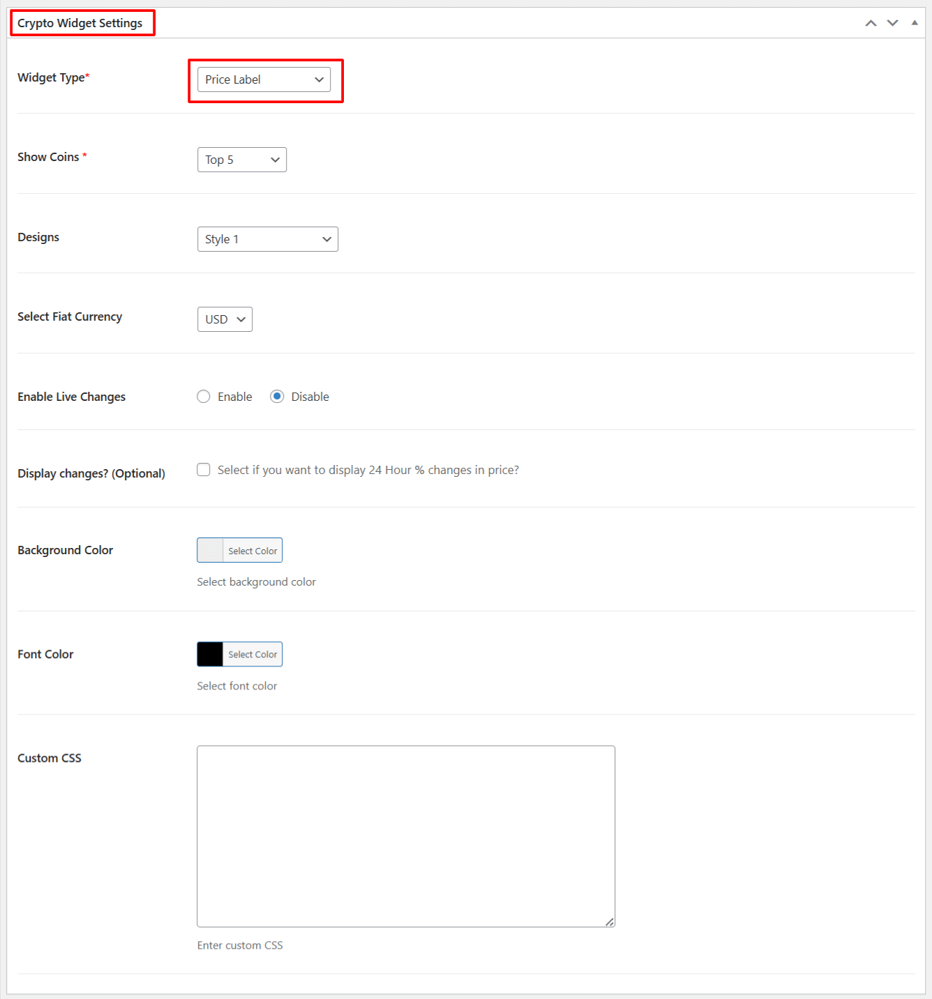 - From your WordPress dashboard, navigate to Crypto Plugins > Crypto Widget Pro.