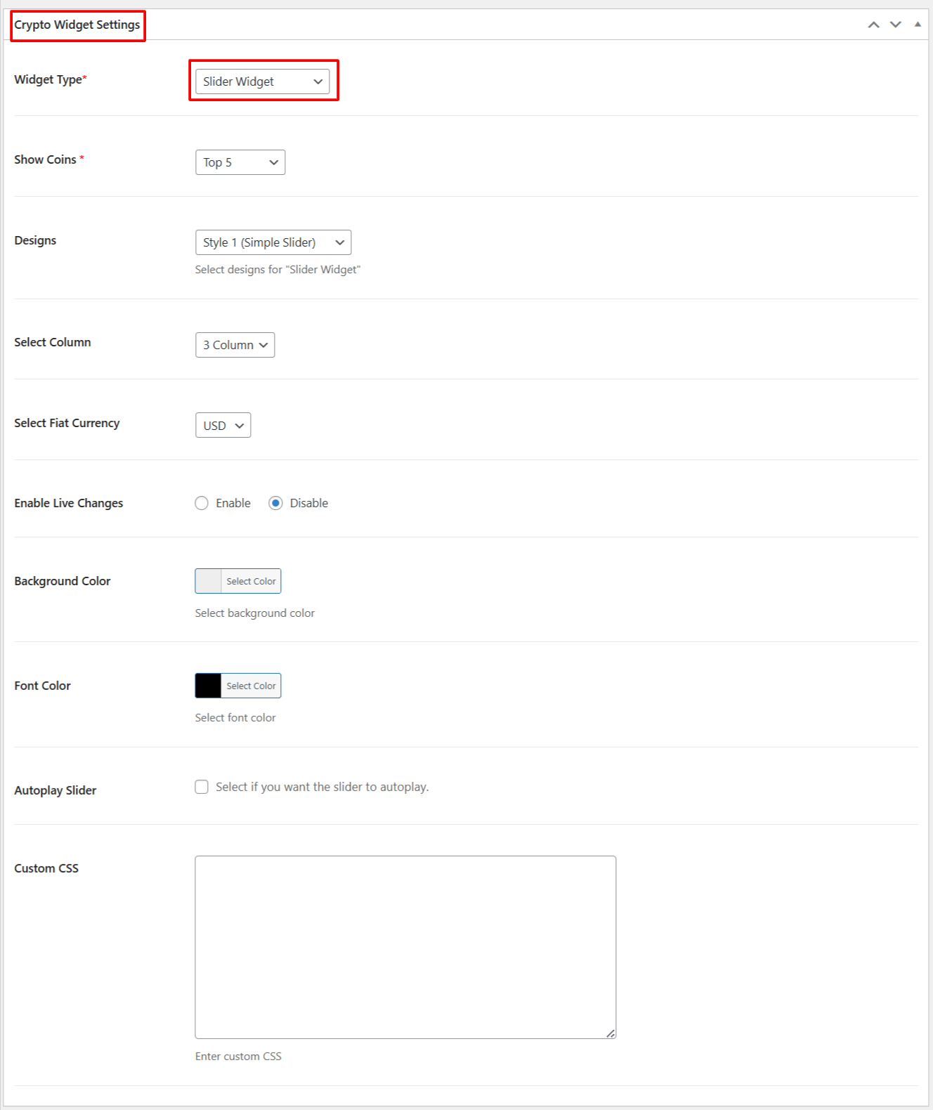 • Autoplay Slider: Enable this setting if you want the slider to move automatically. The coins will slide on their own, creating a scrolling animation.