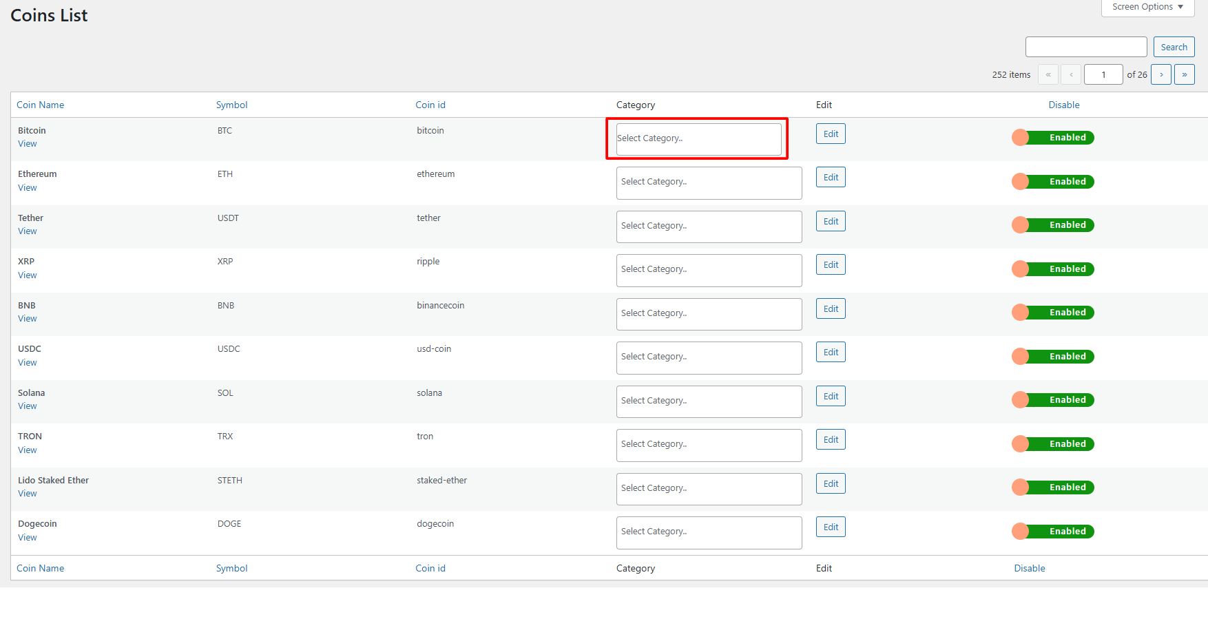 - Now, select the coin and assign the relevant category.