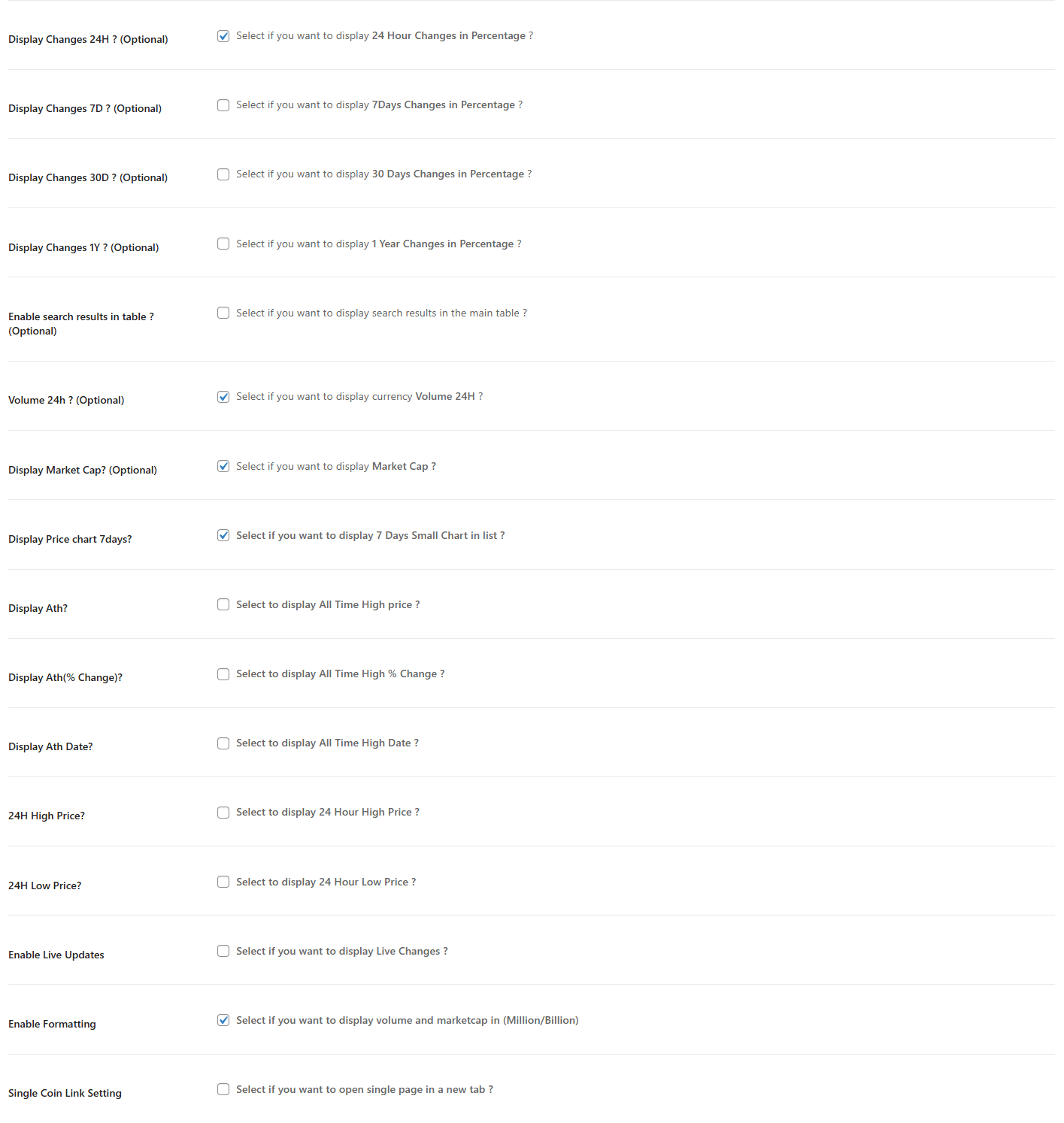 - Display Market Cap?: Enable this option to show each coin’s market capitalization.